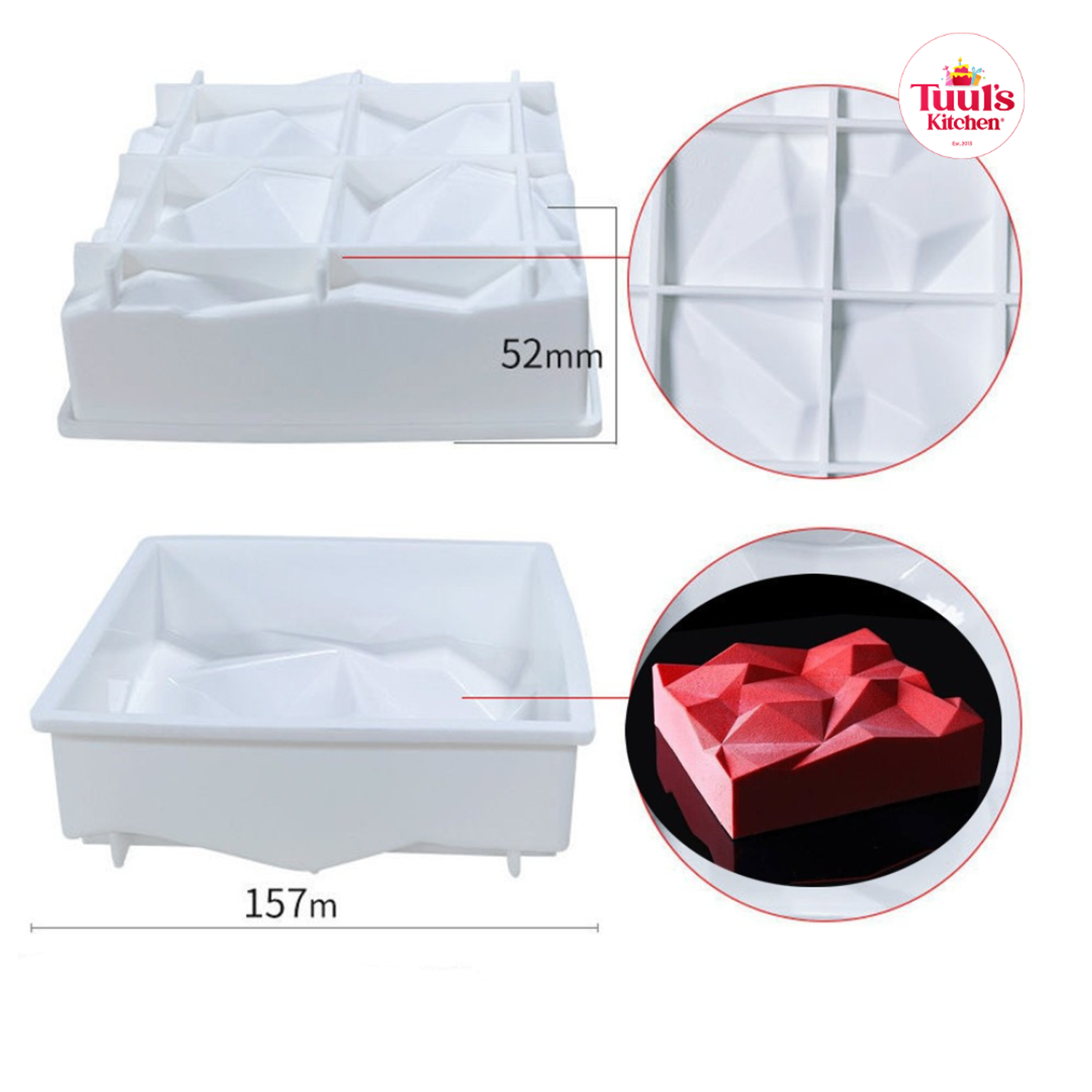Энэхүү силикон хэв нь шоколад болон бусад амттан хийхэд тохиромжтой, хүнсний зориулалтын материалаар хийгдсэн. Тусгайлан хуваагдсан хэлбэрүүд нь гоёмсог, эмх цэгцтэй бүтээгдэхүүн гаргах боломжтой.
